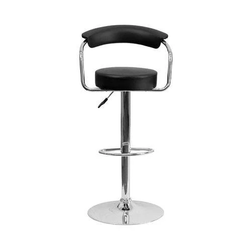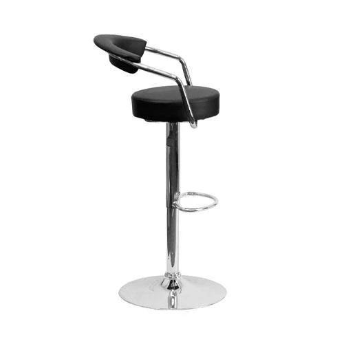Elegant vinyl upholstery and cutout back design, combined with the pedestal chrome finish gives your decor sophistication. The height adjustable swivel seat adjusts from counter to bar height with the handle located below the seat. The chrome footrest supports your feet while also providing a contemporary chic design. To help protect your floors, the base features an embedded plastic ring. The easy to clean vinyl upholstery is an added bonus when stool is used regularly. Add this adjustable stool to your home anywhere you want a sleek, stylish look.